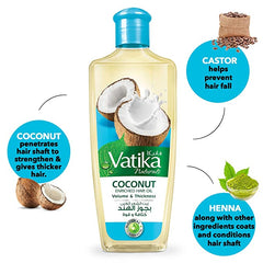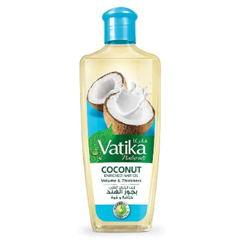 The new improved formulation of Vatika Enriched Coconut Hair Oil is proven to be better than ordinary coconut oil in 4 ways: It makes hair Stronger Hair become Thicker It makes hair Shinier Better Dandruff Control