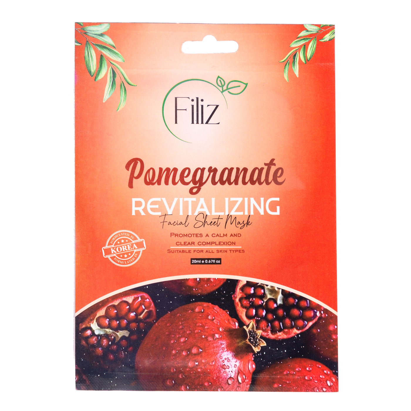 Brighten up your skincare routine with the Filiz Pomegranate Sheet Mask! Packed with antioxidant-rich pomegranate extract, this mask helps refresh and rejuvenate your skin, giving you a juicy boost of hydration and a natural, radiant glow. Slip it on for a fun and fruity self-care moment that leaves your face feeling plump, happy, and ready to take on the day with a cheeky smile. Let the pomegranate power sweeten your skin’s story!