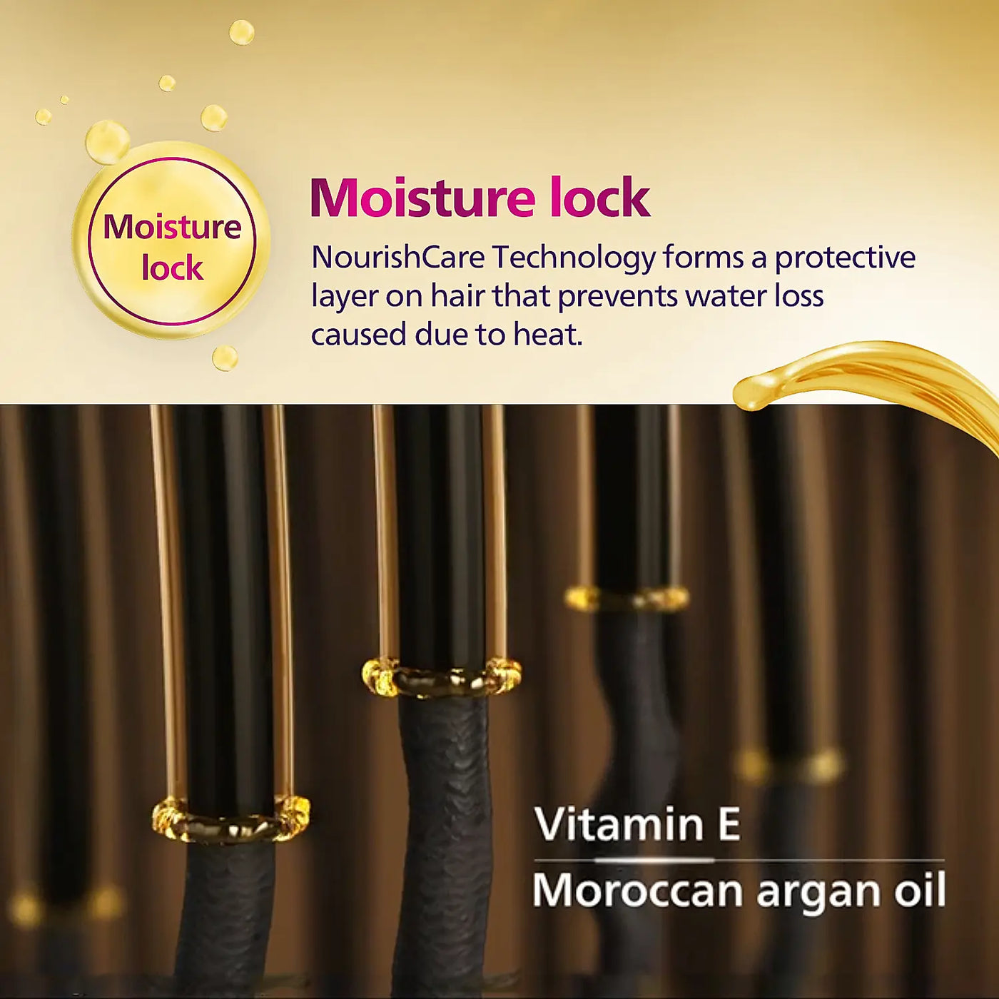 Transform your hair effortlessly while keeping it healthy with the PHILIPS hair straightener. Moisture lock NourishCare technology forms a protective layer on your hair, preventing water loss caused by heat, ensuring your hair remains hydrated and healthy. Say goodbye to dryness and breakage, and hello to smooth, nourished locks that shine with vitalityThe Power Duo Kerashine care and hair nourishment serum acts as a heat protectant, preventing heat damage while providing smooth gliding, visibly shiny, and frizz-free hair. With each pass of the PHILIPS hair straightener, your hair receives a dose of nourishment, leaving it stronger and more resilient.