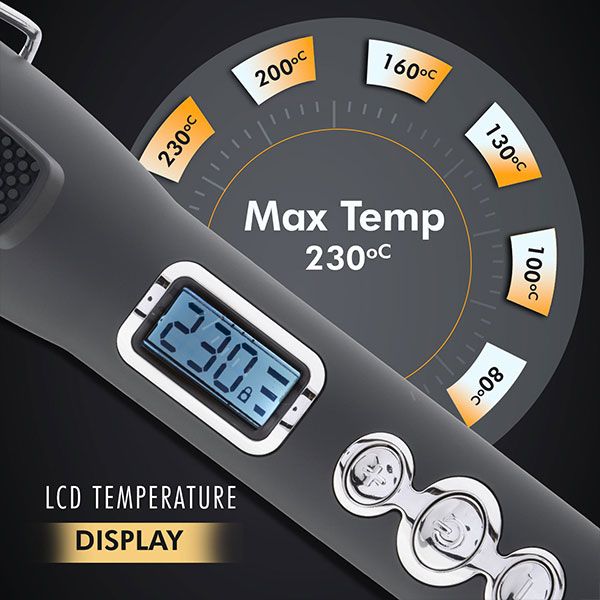 - LCD display with adjustable temperature between 80°- 230° celcius