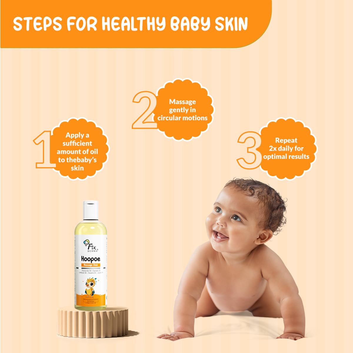Fixderma Hoopoe Baby Massage Elixir|Baby Oil with Chamomile, Camellia, Safflower, Seasome & Jojoba Oil |Baby Massager Oil | Dermatologist Tested (100 Ml)