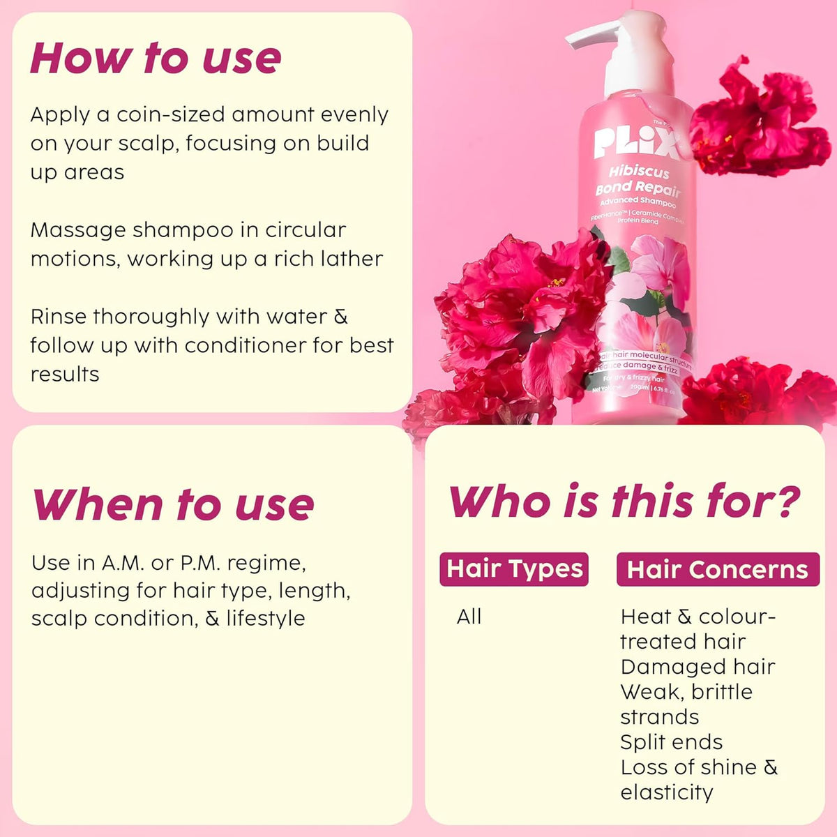 PLIX - THE PLANT FIX Hibiscus Bond Repair Advanced Shampoo for Damaged, Frizzy Hair - 200ml | Repair Hair Molecular Structure | FiberHance & Hibiscus Extract | Men & Women