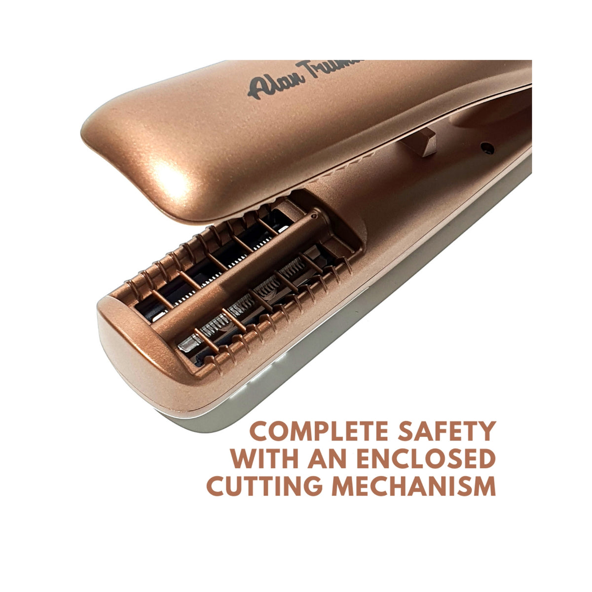 - Patented mechanism for trimming of split-ends, fly-away and stray hair | Two arms construction like a hair straightener for ease of use and convenience
