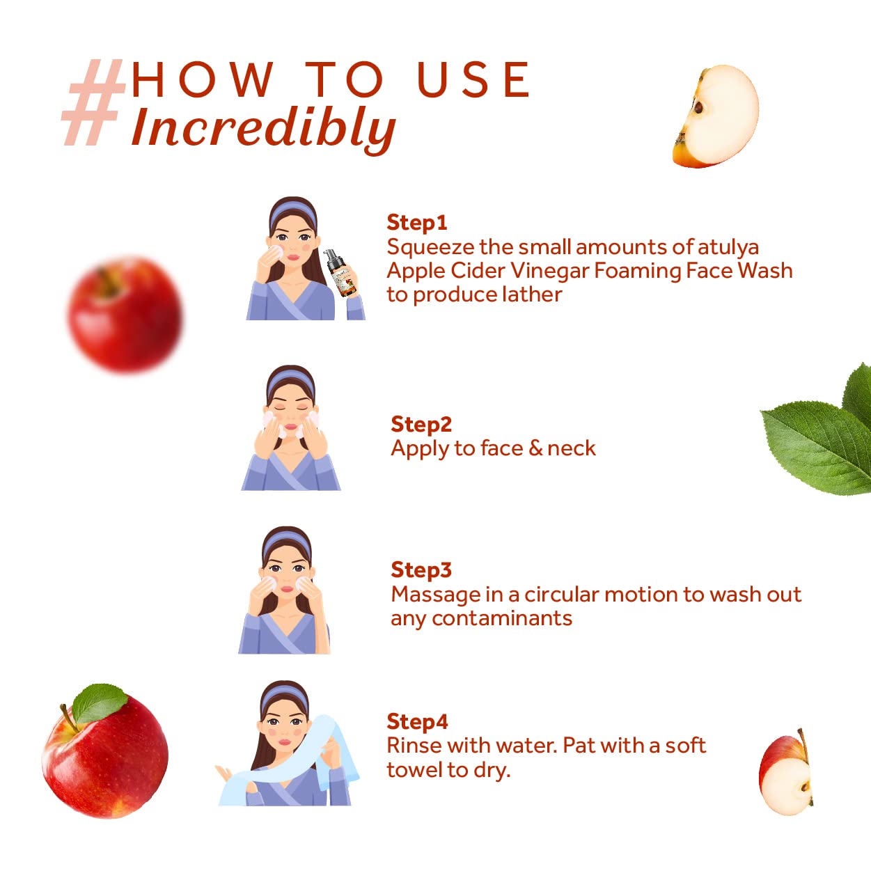 Apple Cider Vinegar Foaming Face Wash is an oil-clearing cleanser enriched with Apple Cider Vinegar, Aloe Vera extract. It is particularly effective at removing grime, sweat, excess oil, and makeup. It aids in the restoration of the skin's natural pH balance as well as the control of excessive sebum production.