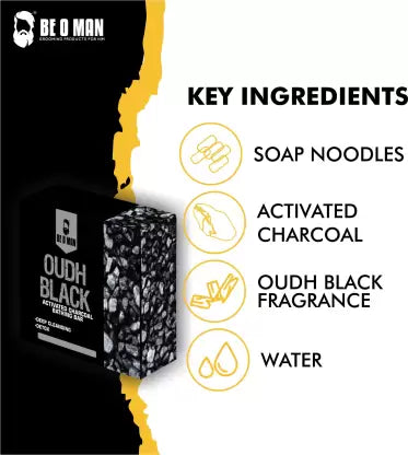 🛁✨ Experience the power of activated charcoal with the richness of Oudh in BE O MAN Oudh Black Activated Charcoal Bathing Bar—a bold, refreshing cleanse for the modern gentleman! 💛