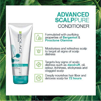 Use after Biolage Advanced Scalppure Dandruff Control Shampoo. Massage onto scalp and hair from roots to ends. Rinse thoroughly.