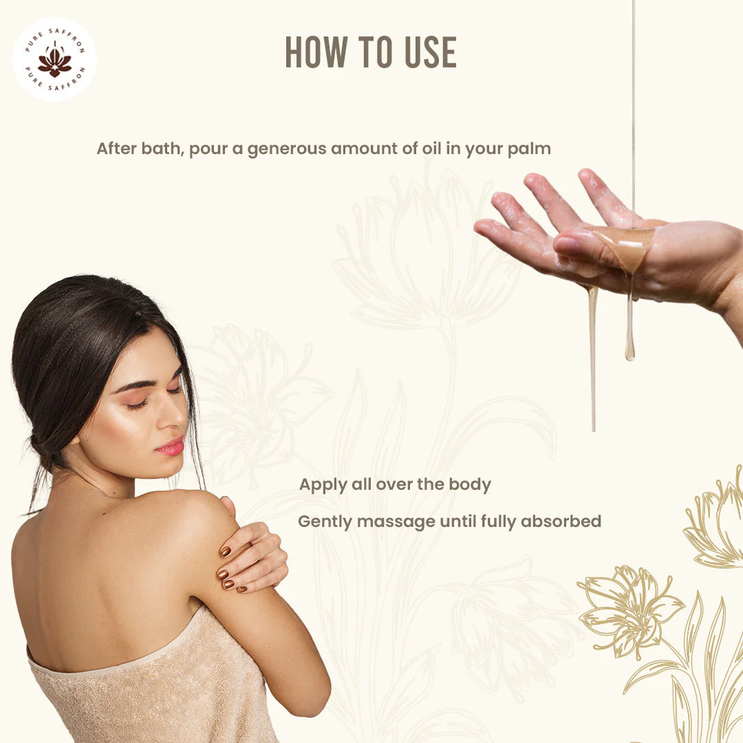 - 100ml Size: This is a standard size for body oils, providing enough product for extended use, such as for full-body application or targeted areas like elbows, knees, or other dry spots.