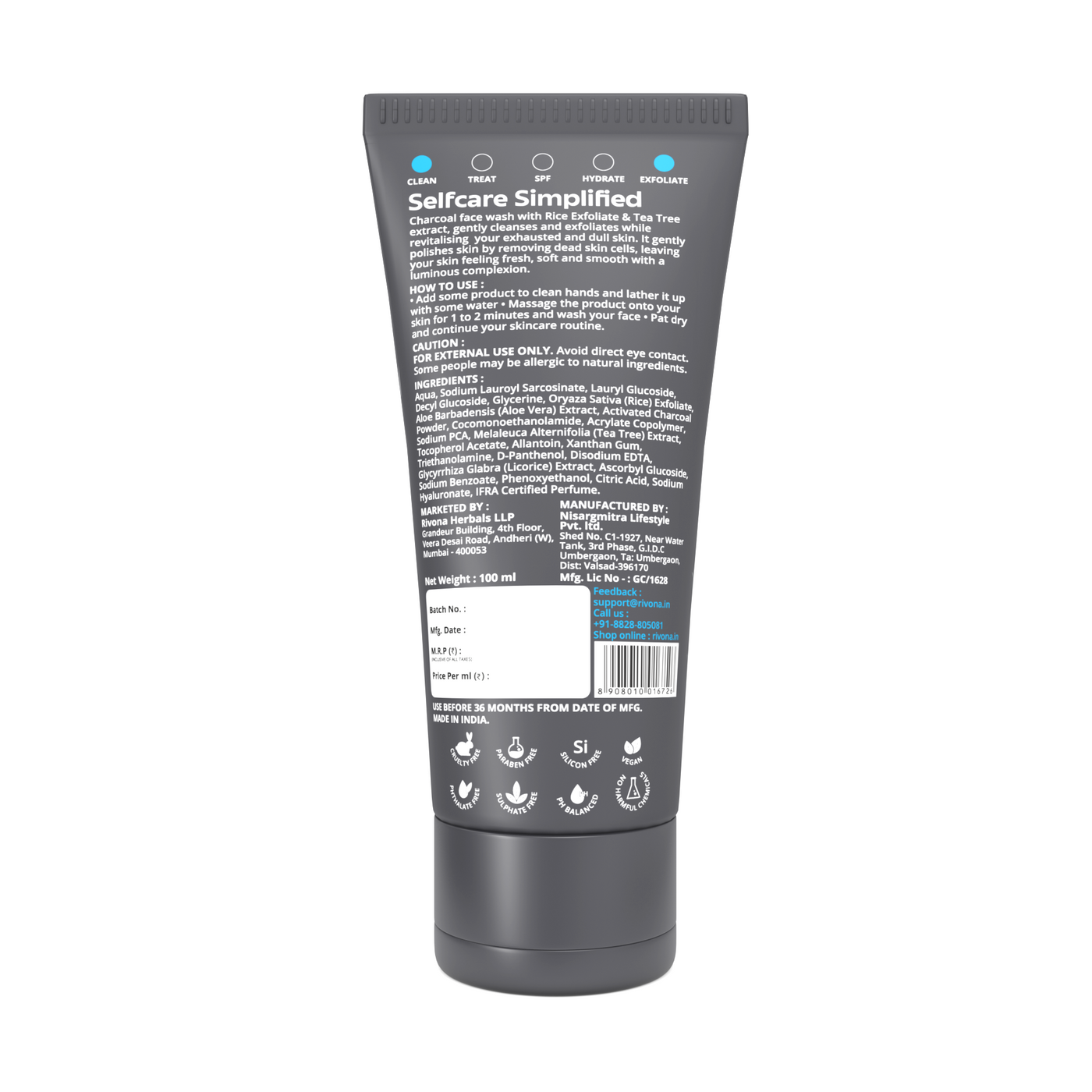 Rivona Charcoal Face Wash with Rice Scrub for Deep Pore Cleansing 100gm